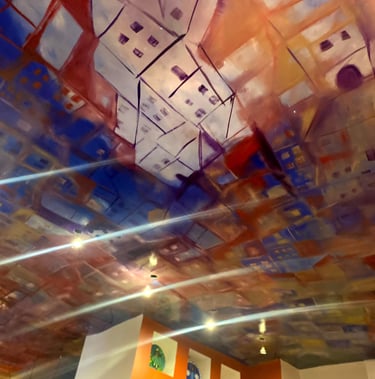 Aline a su capturer l'essence de notre maison avec sa peinture unique et contemporaine. Une expérience inoubliable et inspirante.
