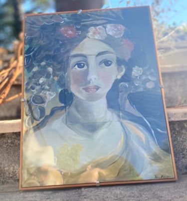 Déméter, déesse de la terre nourricière, est peinte ici comme une figure de fertilité et de protection. Ses formes et ses gestes rappellent la puissance silencieuse de la nature, la promesse des récoltes et l’abondance des saisons. Une ode à la maternité, au soin et au lien indestructible entre la femme et la terre.