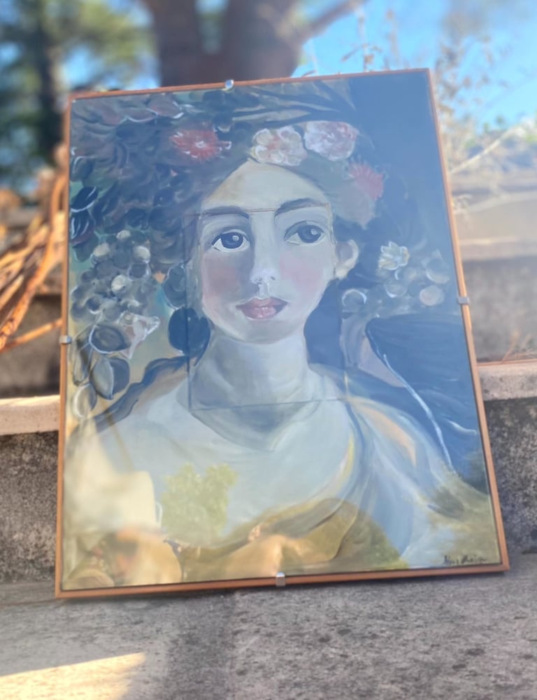 Déméter, déesse de la terre nourricière, est peinte ici comme une figure de fertilité et de protection. Ses formes et ses gestes rappellent la puissance silencieuse de la nature, la promesse des récoltes et l’abondance des saisons. Une ode à la maternité, au soin et au lien indestructible entre la femme et la terre.