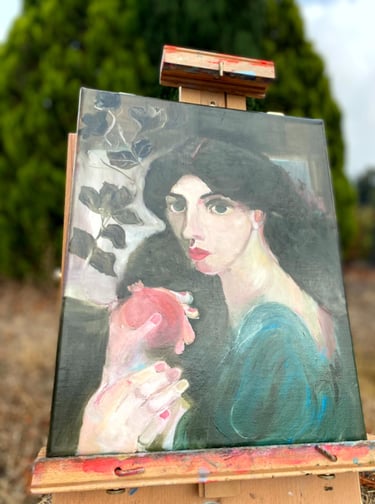 Dans cette toile, Perséphone incarne le passage entre deux mondes : celui de la lumière et celui des profondeurs. Elle est la messagère de la métamorphose, symbole de renaissance et de cycles éternels. Sa présence invite à méditer sur la frontière fragile entre la perte et le renouveau, la douleur et la floraison.